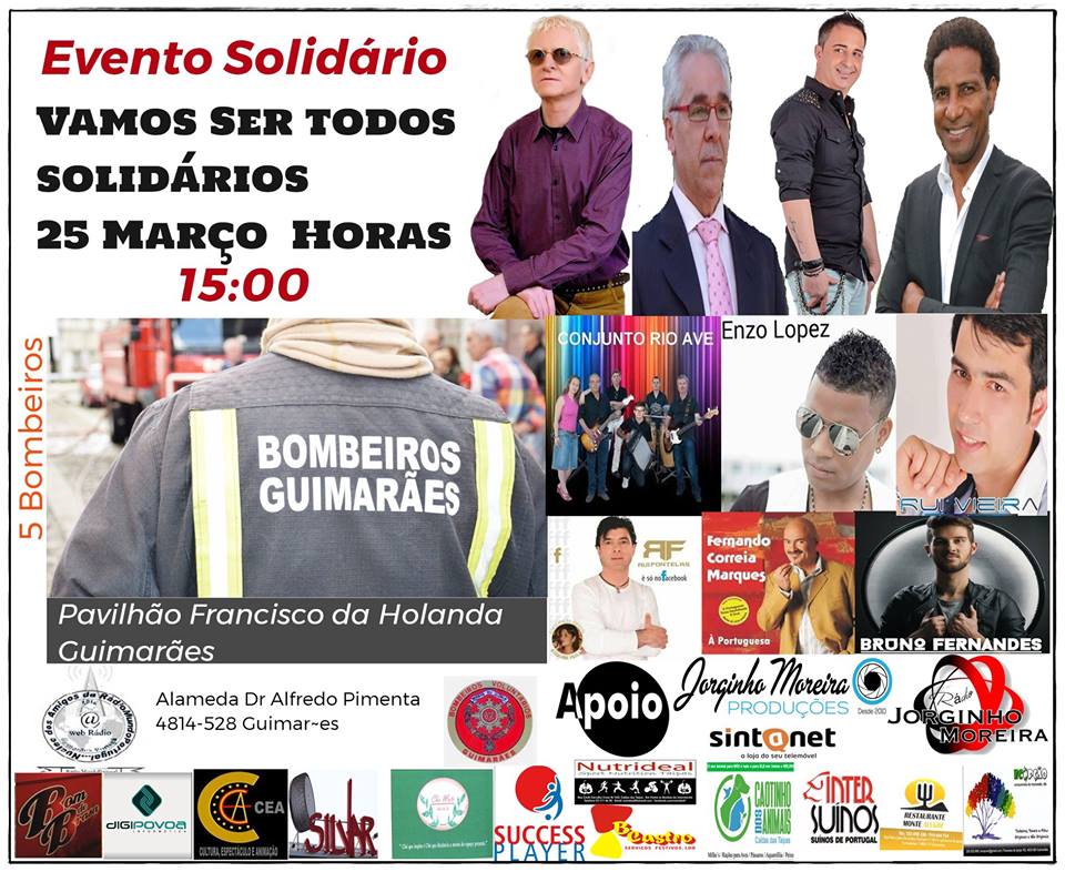 EVENTO SOLIDÁRIO A FAVOR DOS BOMBEIROS DE GUIMARÃES DIA 25 MARÇO 15:00… BILHETES JÁ A VENDA VAMOS AJUDAR A ENCHER O PAVILHÃO FRANCISCO DE HOLANDA TAMBÉM HAVERÁ MUITOS PRÉMIOS PARA SORTEAR PREÇO DOS BILHETES 5€