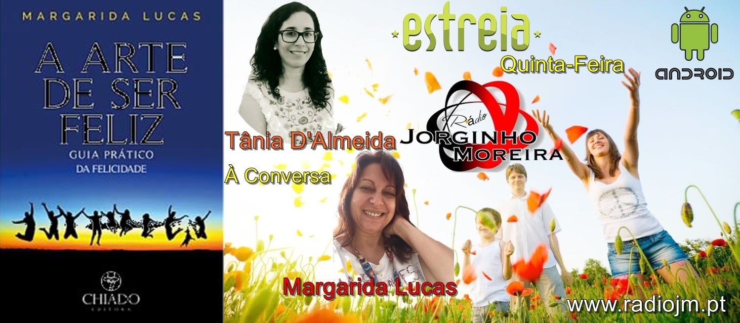 “A Arte de ser feliz” tem como objetivo ajudá-lo a encontrar, em cada situação, uma razão para sorrir. Fazer de cada minuto um momento completo e cheio de satisfação. Não são os problemas que nos destroem, mas sim a maneira como olhamos para eles. Um Livro já a venda,e agora também pode ouvir na Rádio JM Tânia D’Almeida á conversa com Margarida Lucas com estreia marcada na Próxima Quinta Feira a seguir ás 23 Horas!